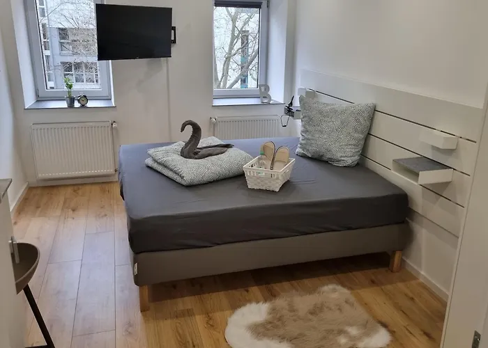 Fornecendo WiFi em toda a propriedade, apartamento City Central Apartment House está situado em Kaiserslautern, a 55 km do aeroporto em Zweibrucken. Completo com microondas, chaleira elétrica e um refrigerador em cozinha comum, a propriedade também oferece uma mesa de trabalho, cafeteira e área de estar nos quartos.